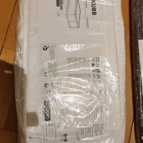 Tvättkorg med avtagbar klädsel. Går att stänga med hjälp av dragkedja. Dragkedjan är hel och fungerar. Även hjulen fungerar bra.