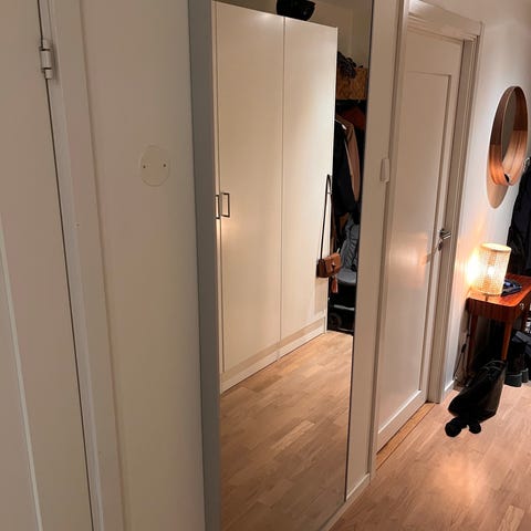 Rund spegel, mått 110 cm, inköpt på Rusta.