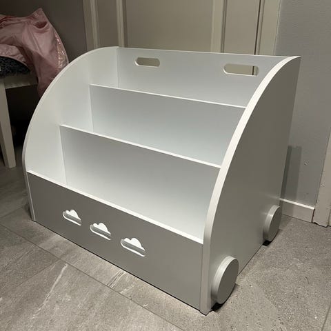 En bokhylla med två öppna hyllplan och 2 hyllplan bakom dörrar.