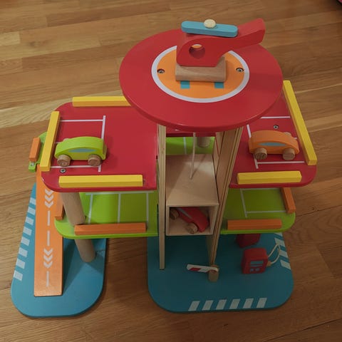 Kids-wood brandbil. En fin, stor brandbil i trä, med gummidäck. Märkt Falck på sidan, den har ett stort lastutrymme