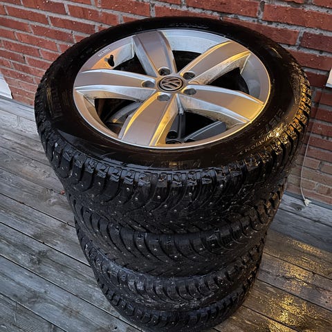 Friktionsdäck som suttit på en Volkswagen Passat GTE från 2018.