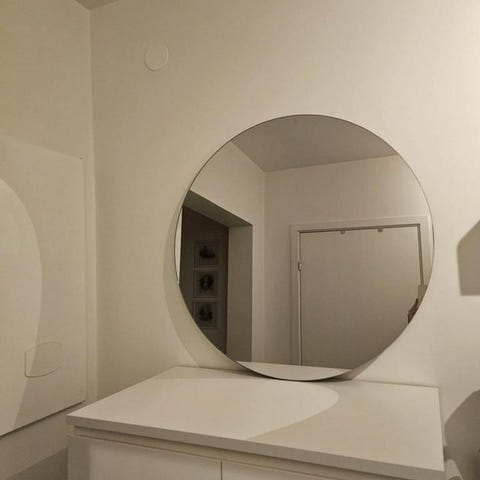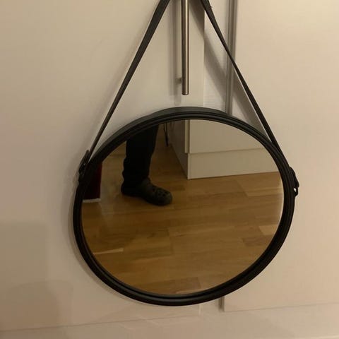 Runt spegel med dekoration av naturligt trä – halvmåne