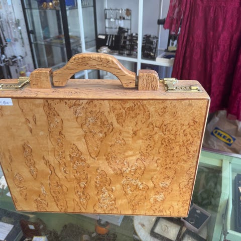 Förstklassigt hantverk i massivt trä med fyra glas och fack för 70 cl flaska.