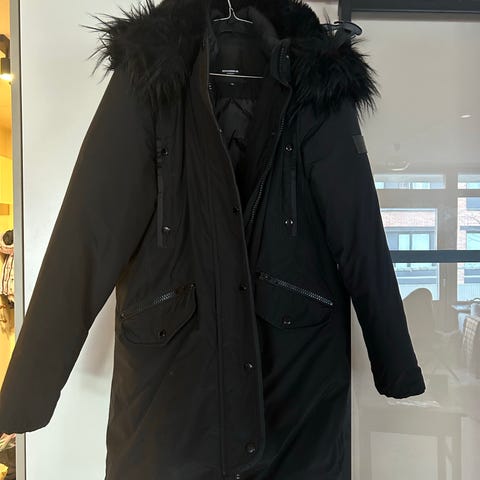 Svart pälsjacka med stor pälskrage och pälsdetaljer. Alla päls detaljer är avtagbara. Har aldrig använt denna och alla etiketter sitter kvar. Passar storlek Smal och mindre M.