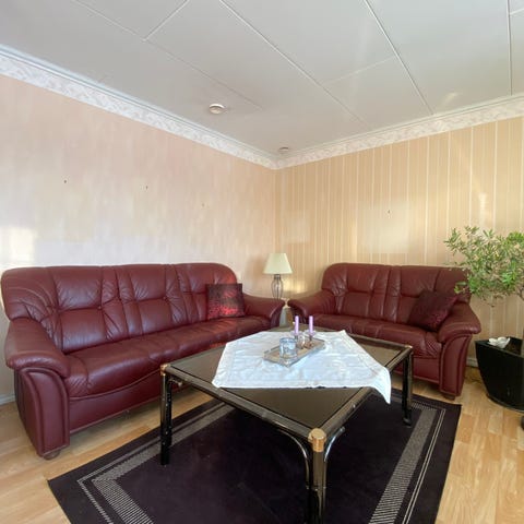 Önska köpa en hörnsoffa i svart skinn. Ej sliten eller nedsutten.