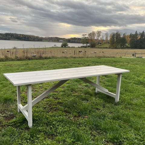 Handgjort träbord, använt lite. Kan även användas utomhus, träet är massivt och täckt med ett skyddande lager lack.