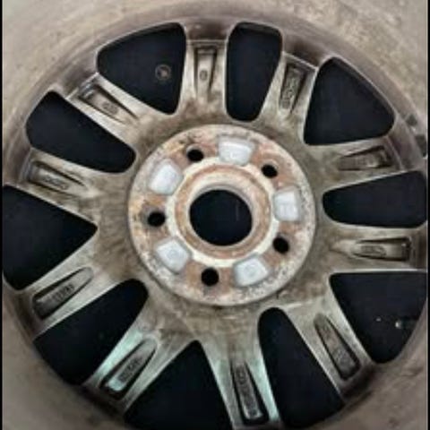 4 aluminiumfälgar 6,5 x 15” med dåliga/snedslitna sommardäck. Små hack, stenskott och smuts men inga deformationsskador efter trottoarkanter eller liknande. Pris 1200 kr.