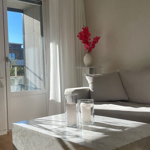 Soffbord av lastpallar. Gjord av helt nya lastpallar (EU märkning). Står på hjul och har en plastskiva till (köpt på biltema). Målad i varm grå färg med svag lila ton. Perfekt att ha lådor i och skapa en mysig shabby chic atmosfär 😍. Själv hade jag massor med familjefoton under glasskivan.