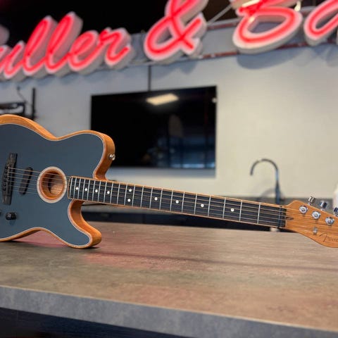 Tillverkad i Mexiko, utan case. Nypriset är 12339 SEK (cirka 1250 USD). Mycket lite slitage men har en cowboy-dekal på baksidan (kan tas bort). Daterad 12/2021. Den fortsatta utvecklingen av Fenders banbrytande Acoustasonic-plattform fortsätter med introduktionen av Acoustasonic Player Telecaster. Denna akustiska/elektriska gitarr erbjuder ett eget set på sex röster som framhäver dess unika personlighet. En avskalad 3-vägsomkopplare gör det möjligt att formskifta mellan akustiska och elektriska toner. Med Acoustasonic Player Telecaster har plattformen finslipats för att erbjuda ett mångsidigt och mer lättillgängligt verktyg för den moderna musikern.