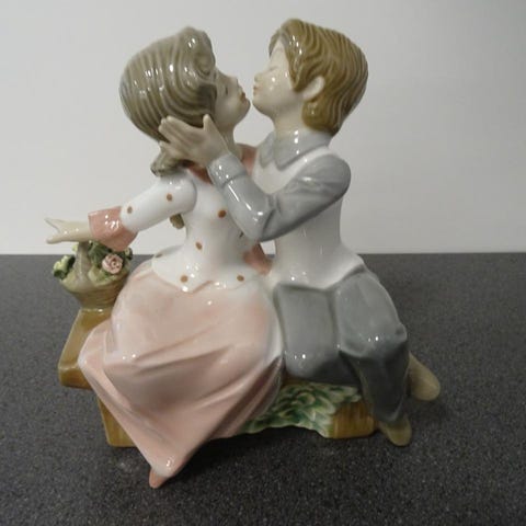 Porslinsfigurin på sockel 30cm hög. Flicka som sminkar sig . Köpt i Kina. Hög kvalite