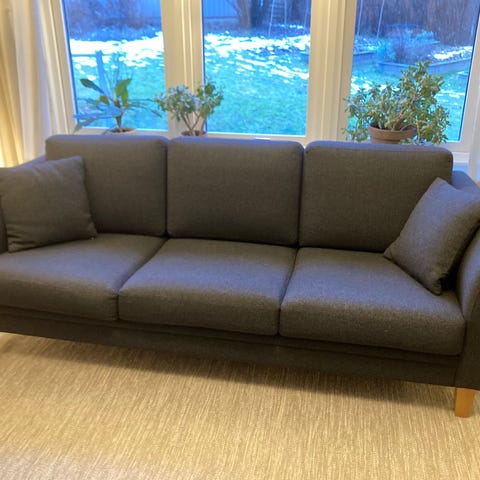 Soffa 3:a 220cm bredd 97 cm , 1 1/2 150cm nitar på sidorna 1500:- Mio.