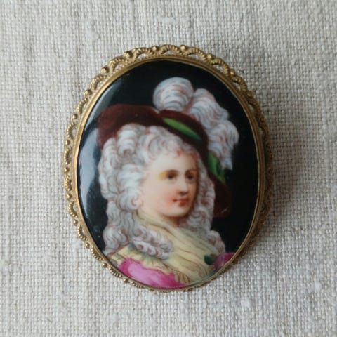 Allt äkta på denna suveräna brosch, äkta silver, målning och äkta silver fäste för kedja på baksidan o då blir det ett fint halsband. Familje "klenod"!