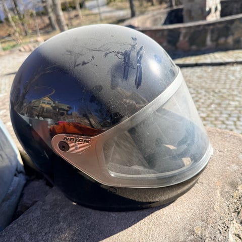 Detta är en vintage Jofa-hjälm med Svemo-märkning.