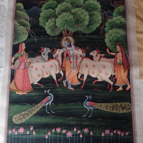 En målning på papyrus och motivet är Delfiner. Mått. Ca: 33 cm x 43 cm. Ej inramad.