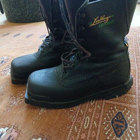 Mycket obetydligt använda storlek 42. Pjäxor Skywalk och skridsko skenor- Almgrens lättmetall skridskor härdat special stål. Isdubbar.