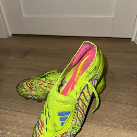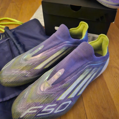 Helt nya fotbollsskor i originalförpackning med tillhörande skopåse.