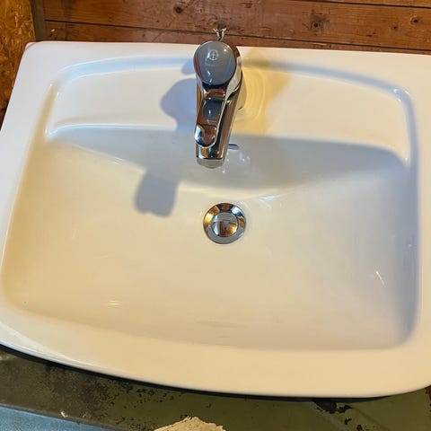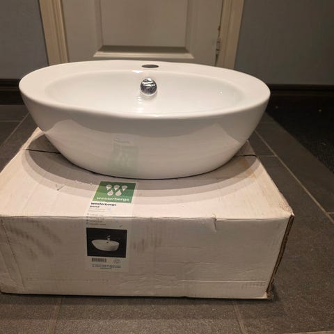 OBS! Det är endast handfat. Blandaren och skåpet finns ej kvar.