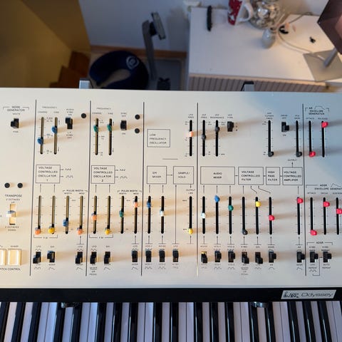 Fint yttre skick men behöver lite omvårdnad: Jag får bara ljud i den om jag drar upp VCA gain. Drar jag ner den och drar upp ADSR volym så hörs ingenting. Kanske bara regeln som är trasig… Alla tangenter funkar iaf, filtret låter kanonbra, S/H funkar också. Lite oxid här och där. Endast avhämtning vid Odenplan i Stockholm