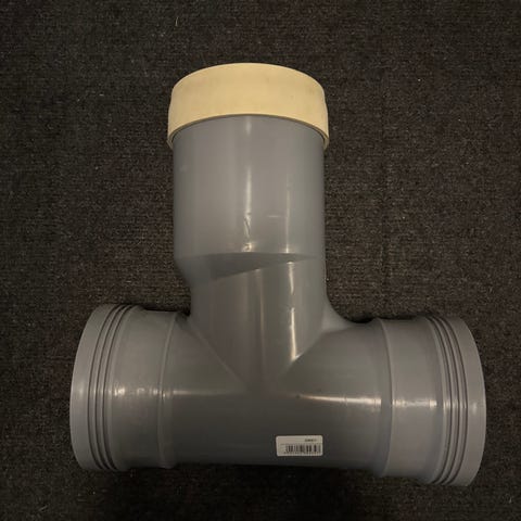 Säljer en övergång för avloppsrör från 4 tums N-muff / normalrörsmuff (dvs gjutjärnsrör) till 110 mm muff. Tillverkad av Faluplast, RSK 310 6248.