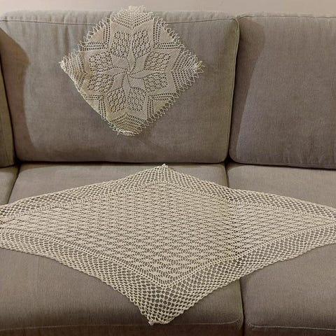 Två stycken vackra handgjorda runda dukar från 90-talet – ca 30 år gamla.