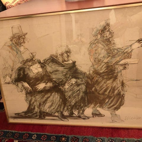 Grafiskt blad av Peter Dahl . Från kro’s 50 års jubileum ” full soff ”