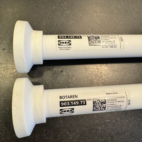 Som framkommer av info på bild går fäste upp mot tak att förkorta till önskad längd.
