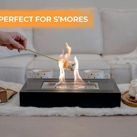 Väggmonterande spiskamin/etanolkamin men funkar hur bra som helst även som fristående. Säkra och rökfria lågor som lätt kan värma upp ett helt rum då den har en dubbelbrasa.