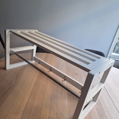 Vit hatthylla säljes. Bredd 60cm , djup 33cm , höjd 30cm 200kr