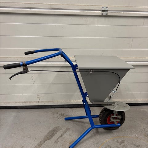 Vi säljer en Epoke Epomini 5 Sand och saltspridare som är en äldre beprövad modell och som varit välanvänd och som är fullt fungerande. Den väger 30kg och dras för hand och ger en arbetsbredd på 55cm och kan fyllas med en volym av 50 liter varje gång den fylls på.