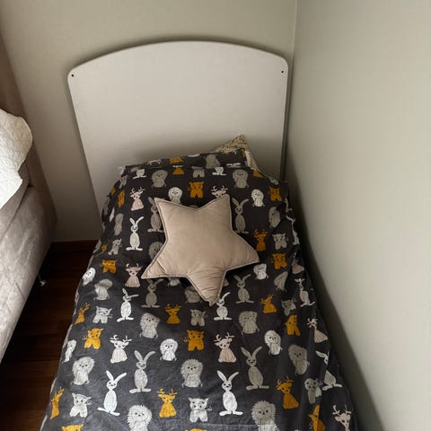 Passar för användning i barnrum och ungdomsrum. Enkel barnsäng 160x70, madrass o madrasskydd medföljer(tvättat). För kompisen, sommarstugan, barnbarnen etc. Nedmonterad.