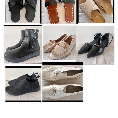 Från Jobi Sandaler i storlek 36. Sandalerna är beige och svarta med flera remmar och justerbar stängning. Materialet verkar vara syntetiskt med en mjuk innersula. Passar för vardagligt bruk under varmare väder.