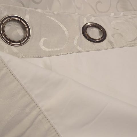 1st spetsgardin som går omlott i varandra som är ihopsydd ovan om man vill kan sära isär om man vill ha lite ljus i rummet 250cm bredd ,220cm lång (stora fönstret)