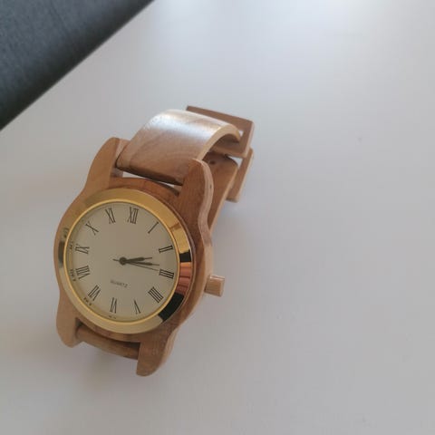 Bordsklocka batteridriven björkrotsslöjd