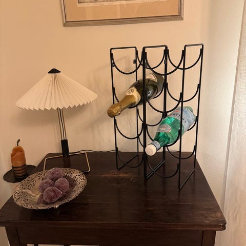 Vinställ från steel function. Aldrig använd, skruvar finns i förpackningen. Det finns plats för 8 flaskor.