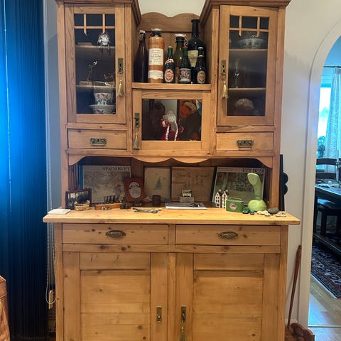 Antik Målad Träskåp Med Dekorativa Blommotiv