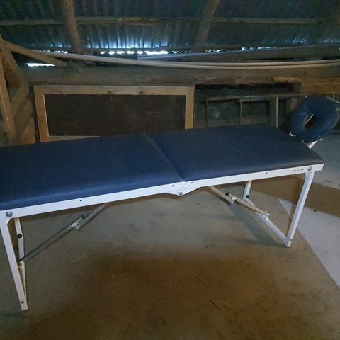 Tarsus massagebänk, hopfällbar, inkl fodral. Lätt att fälla ihop och transportera. Sparsamt använd.