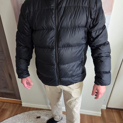 Fin jacka. Färgen är svart. Inte blå som det visas på den här bilden. se de andra bilderna.