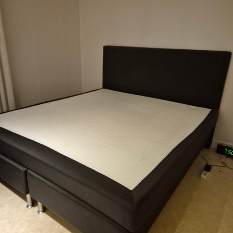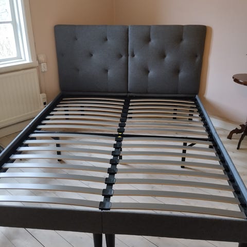 H&M Home Säng med grått tyg och tuftat huvudgavel