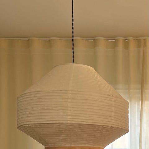 Tillverkarens info (https://kavehome.com/en/en/p/hila-ceiling-lamp-screen-in-white-paper-with-natural-wood-veneer-o-80-cm):