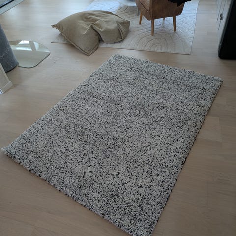 Lyxig ryamatta i mjuk polyester. Materialet varierar i nyans och lyster vilket ger mattan ett livfullt uttryck.