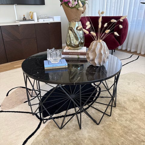Ett soffbord Como från Bolia beige marmor 110x110cm och 48 cm högt