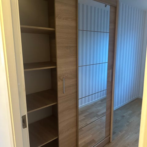 Garderob från Jysk i fint skick. Hyllplan i är borta, är nu två klädstänger endast. Ens dörren lite sne, lär gå att skruva om. Annars fint skick. Prioriterar snabb upphämtning.