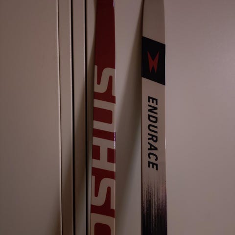 Längdskidor med stavar med förberedning inför vintern,märke Järvinen längd 200 cm. Med stavar märke Sanfeng längd 132 cm.