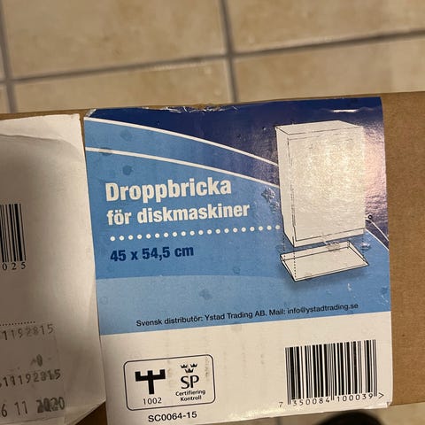 Electrolux droppbricka / droppskydd till kyl och frys.