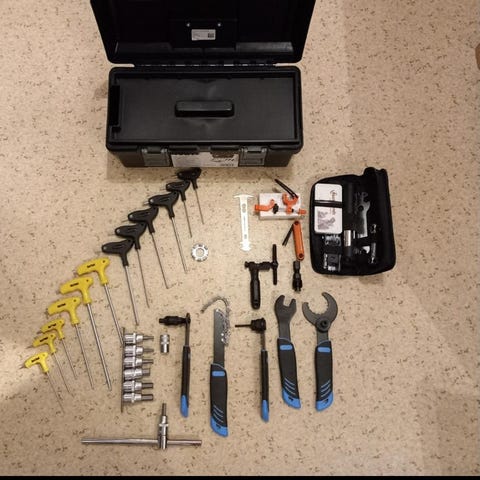 Ett par helt nya fina cykelhandtag, punkterings kit och blandat med cykelvärktyg