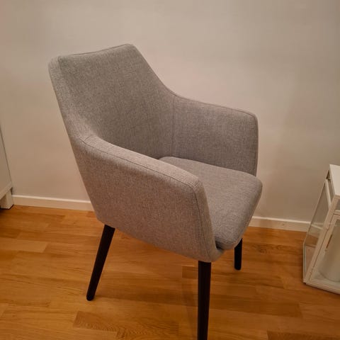 Sex matplatsstolar i gott skick. Två år gamla. Mjuka att sitta på med vadderat ryggstöd.