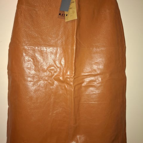 Jofama kjol och väst i skinn. Kjolen är som ny, västen har en färgskiftning på ryggen.