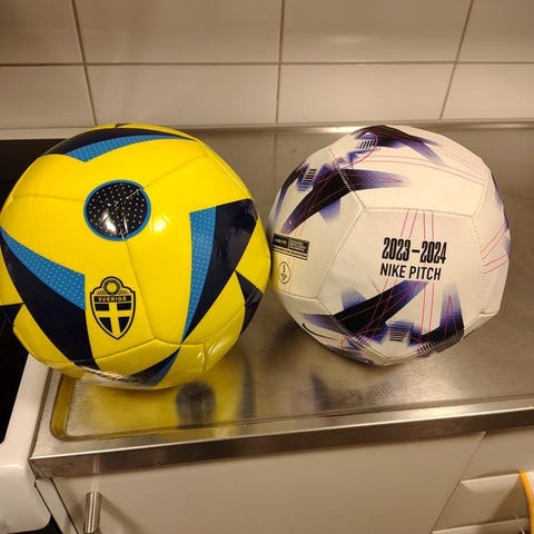 Priset som står på annonsen är för en boll. Varje boll säljs för 100kr st. Nike silver str 5, adidas worldcup 2022 str 5 och nike futsalboll.