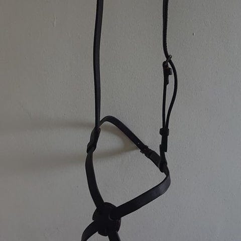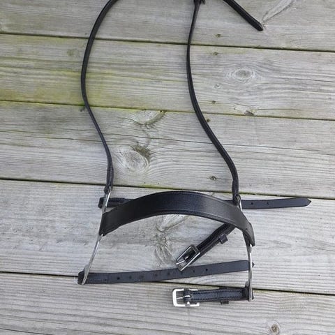 Nosgrimma svart, skick se bilder. Troligen stl cob, mäter runt nacken 84-95cm och runt nosen 54-64cm