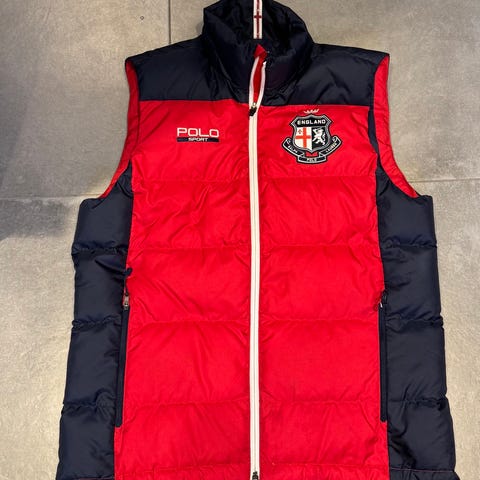 Royal Polo fleeceväst för herr i storlek L med flerfärgat mönster. Västen är tillverkad av fleece och är avsedd som ytterplagg.